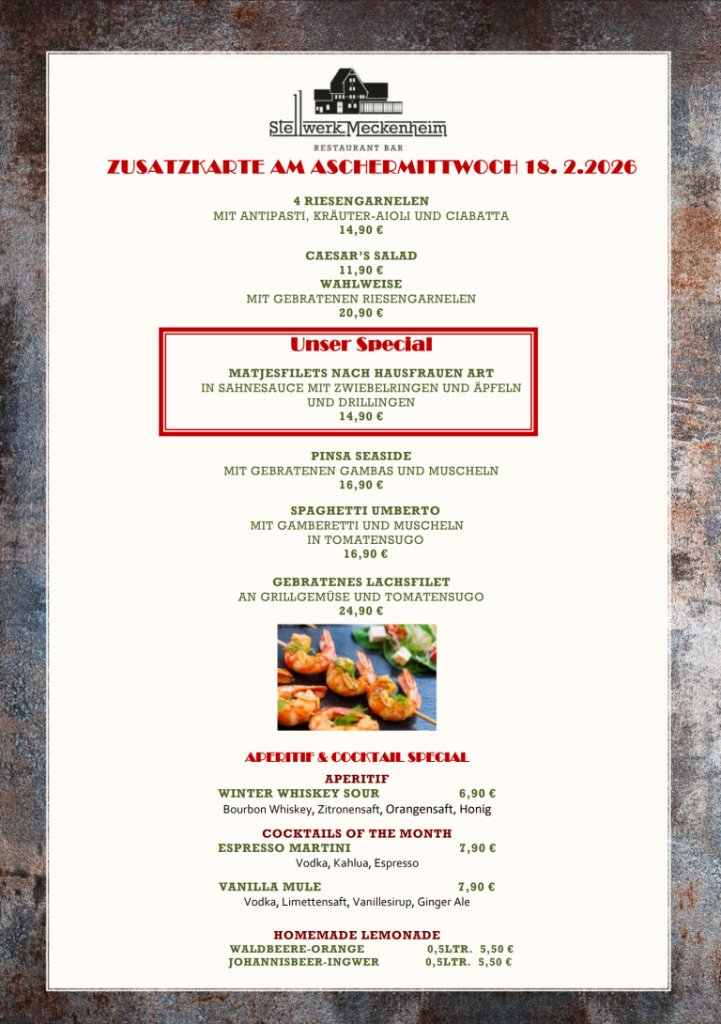 Entdecken Sie unsere aktuellen Events und saisonalen Angebote. Ob Winter-Spezial, Aschermittwoch-Karte oder Candlelight-Menü, unsere Küche überrascht regelmäßig mit neuen Kreationen und besonderen Events.